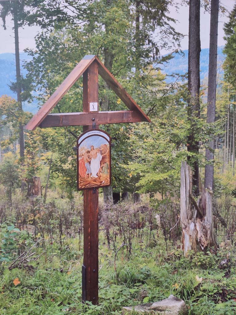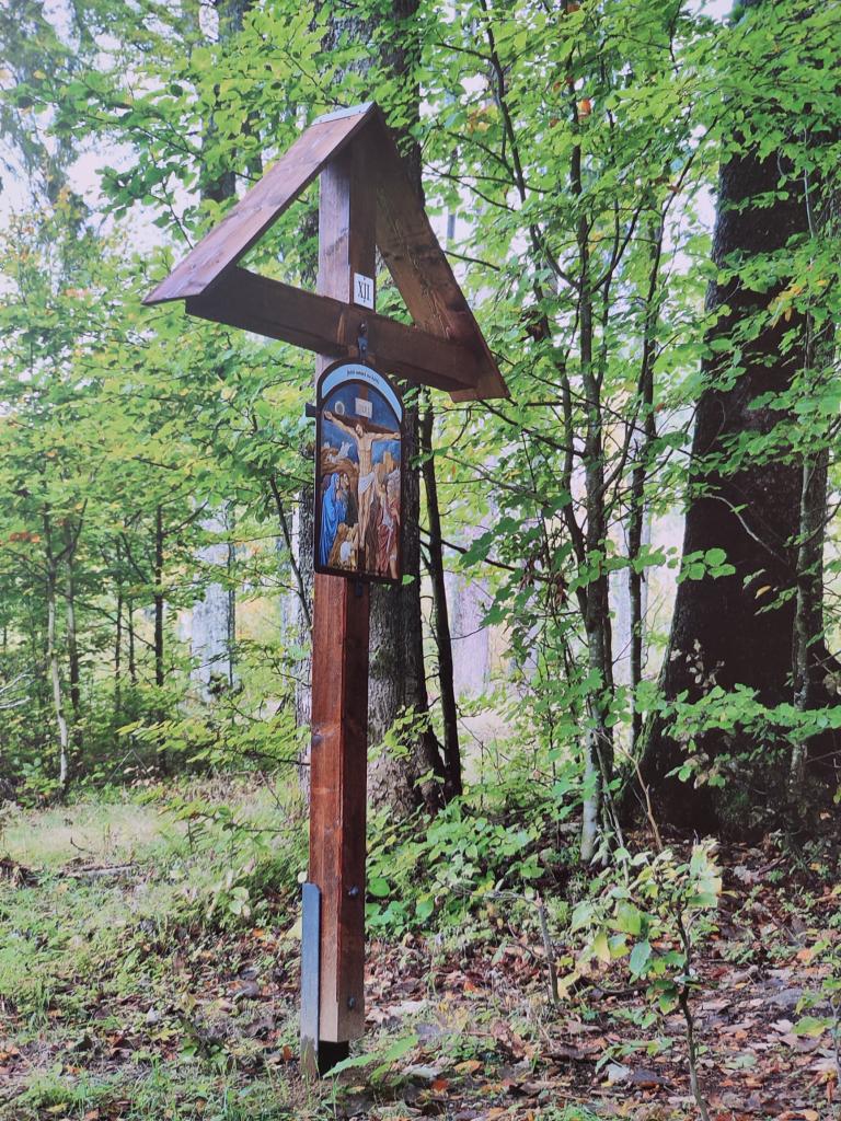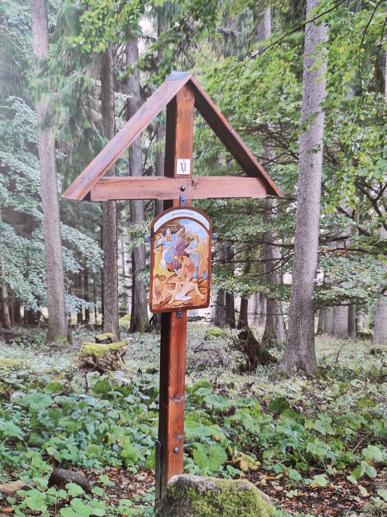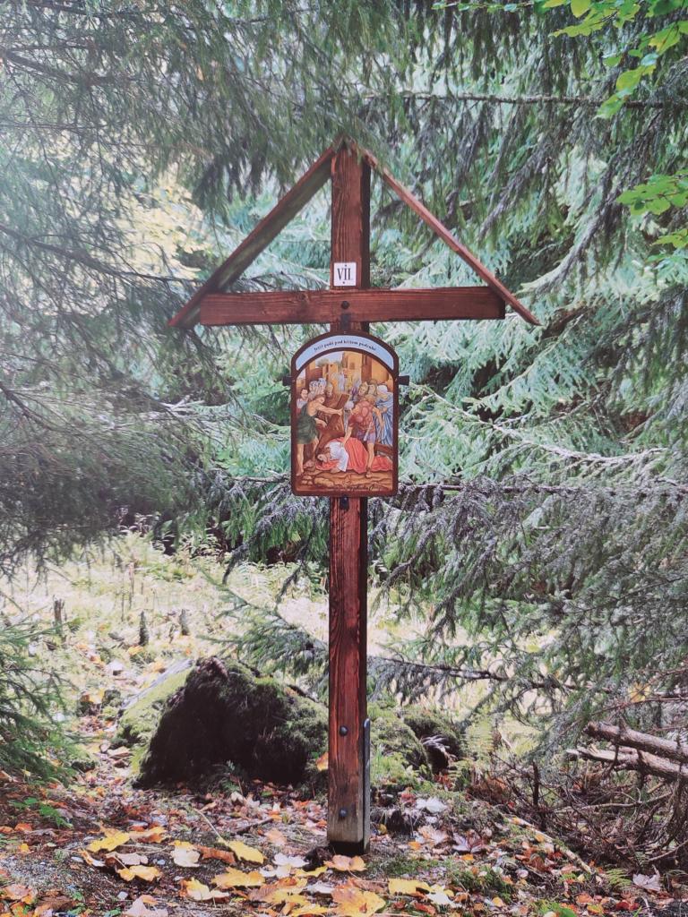 XIV. In der Vergangenheit haben drei Kreuzwege zur Tussetkapelle geführt – aus Stožec (Tusset), České Žleby (Böhmisch Röhren) und aus der Siedlung Dobrá (Guthausen). Im Jahre 2019 wurde auf Initiative der Gemeinde Stožec und durch Beiträge vieler Sponsoren die Renovierung des Kreuzweges beendet, der teilweise den Weg aus České Žleby wiederspiegelt. Die Bilder in den Metallplatten sind das Werk der Malerin und Restauratorin Vladimíra Fridrichová Kunešová.